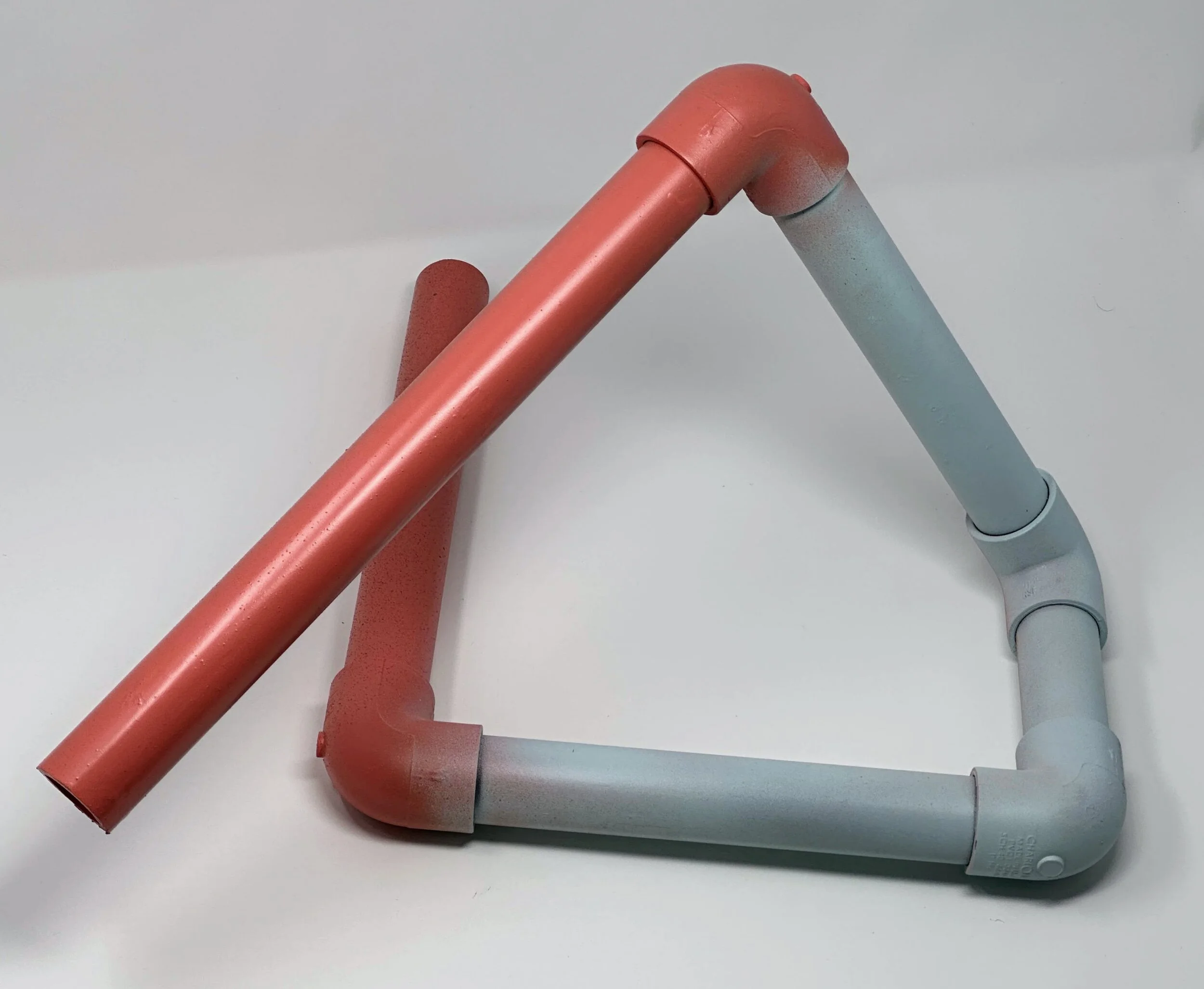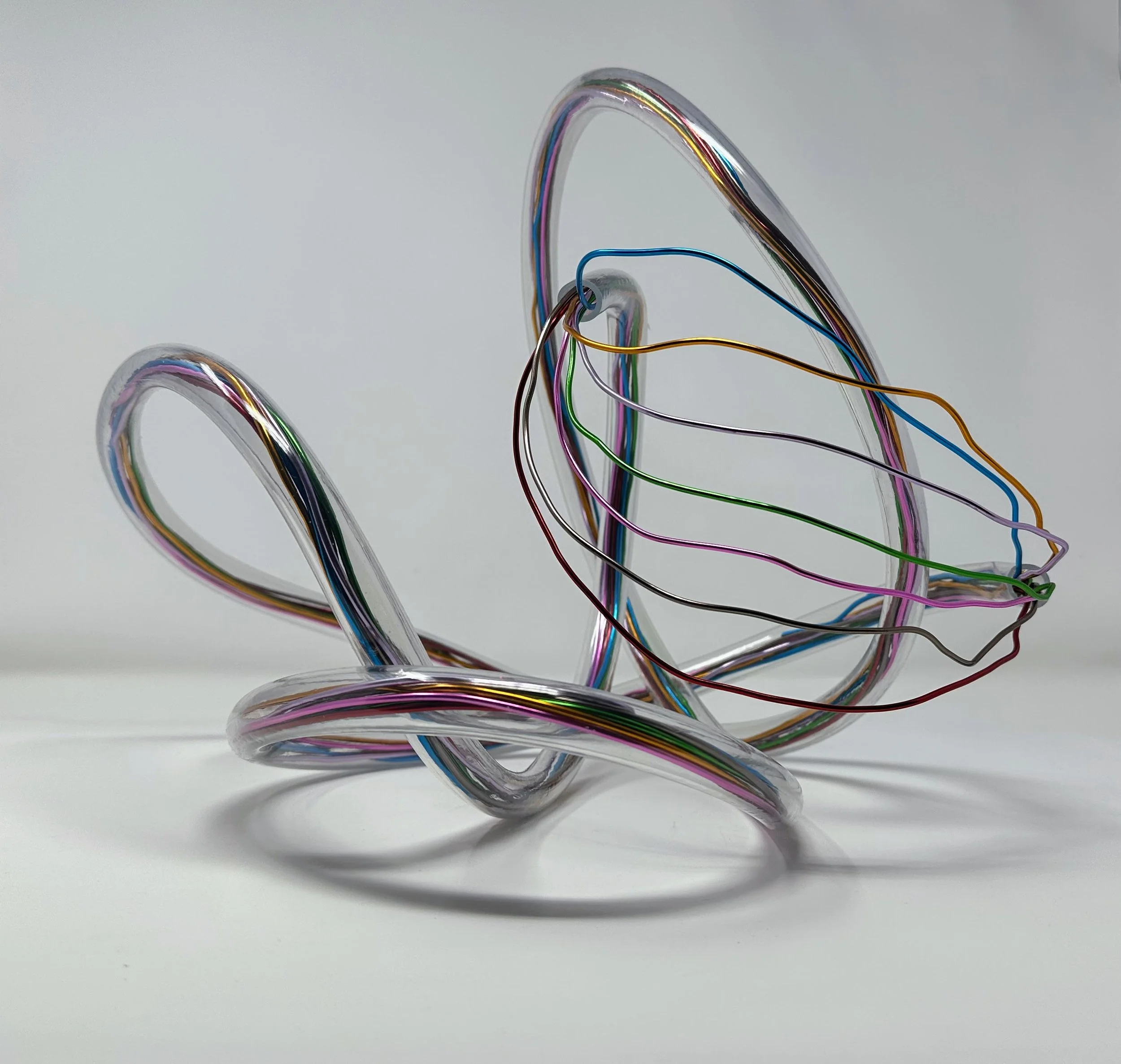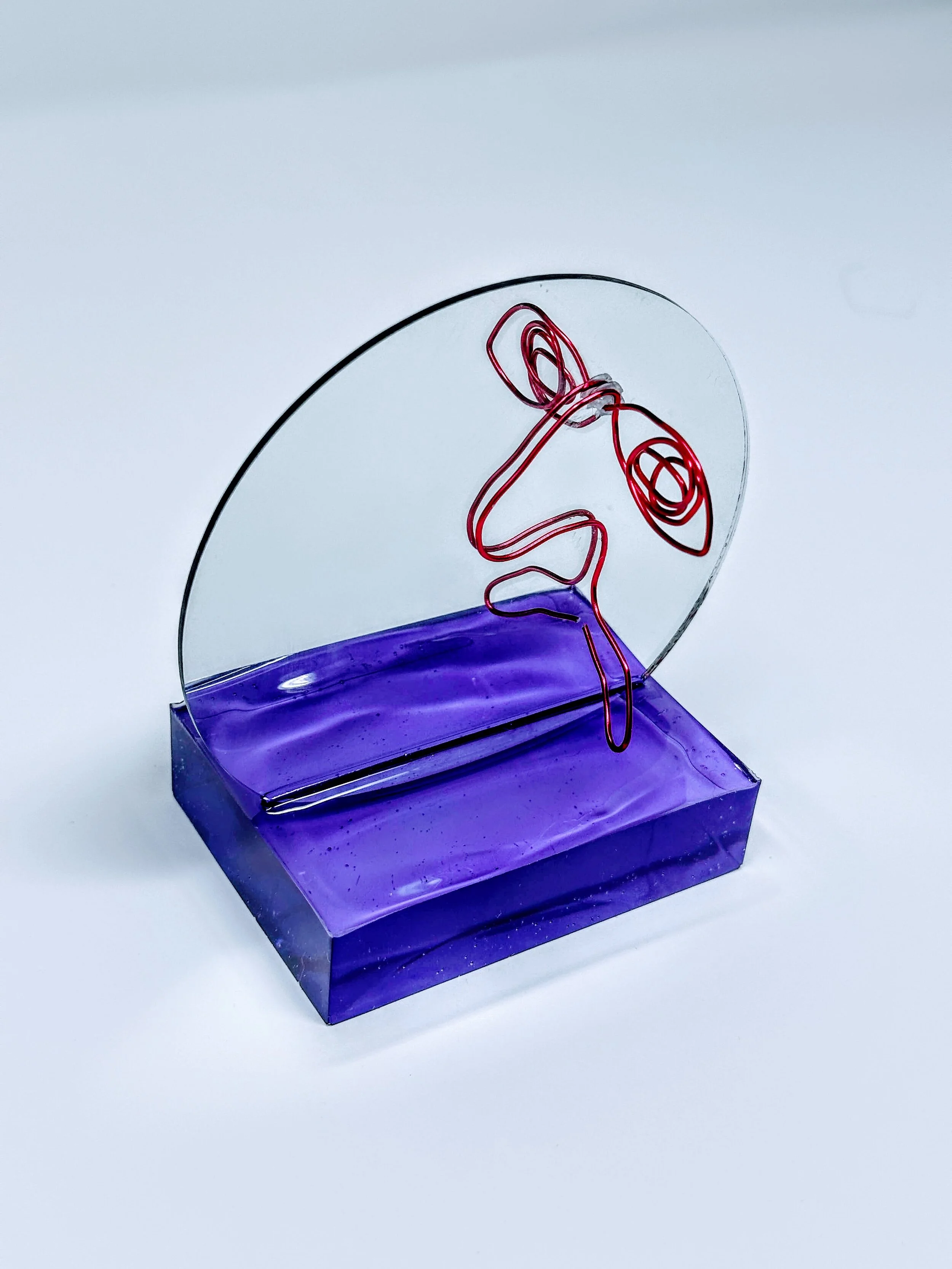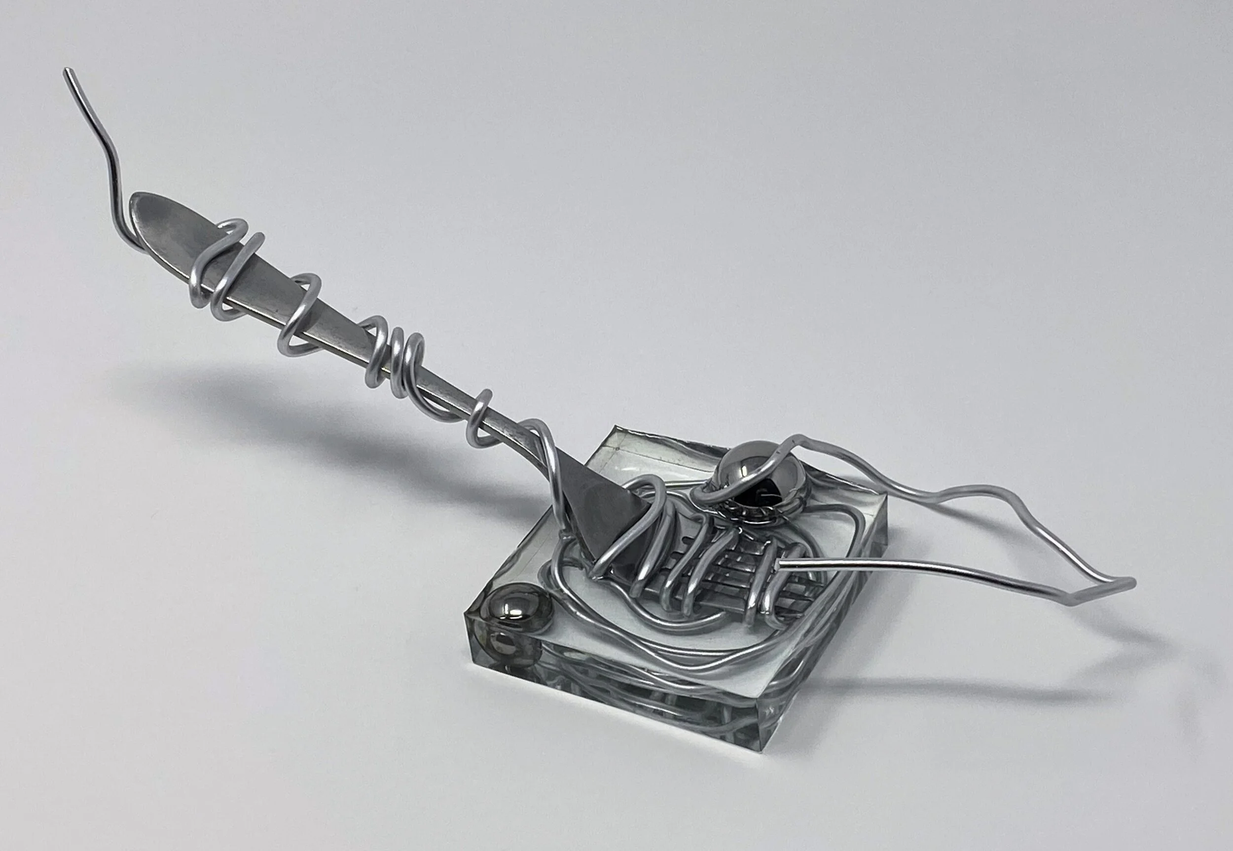 So I began a different journey, through the wilderness of I-don’t-know-what-I’m-doing, and along the way have put my hands on everything in reach — from copper and plexiglas to resin and rubber, from PVC pipe to that sticky foam you spray to fill the mouseholes in your baseboard — in creating my visual, gloriously nonverbal pieces.